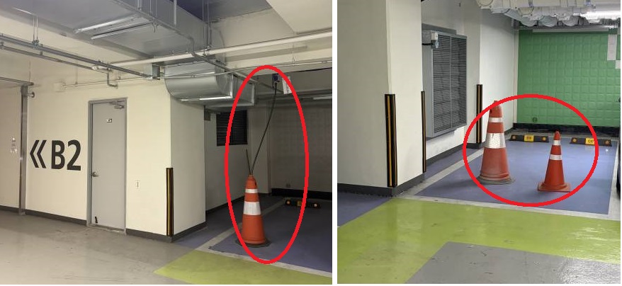 바쁘신 와중 민원대응에 깊은 감사드립니다. 사진에서 보는바와 같이 정상적인 주차면 같은데, 덕트에서 나온 케이블과 라바콘이 왜 있어야 하는지 그로인해 유후 주차면으로 된건지 확인 설명 부탁드립니다. 그리고 주차면중 폭너비로 인해 차량 주차이후 운전석 개방이 안되 주차선을 넘겨 주차하는 공간이 몇개나 되는지 실태파악 혹시 되신게 있는지요. 입주민/17층님 제보로 민원요청드립니다.